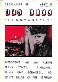 Sebastian Koch : New Life hat sich sehr schnell vom Depeche Mode ‘Fanzine’ zu einem Fanzine für alle viele Arten elektronischer oder alternativer Musik entwickelt. Das hiess damals noch ‘Techno’… und im Technoclub meines Freundes Talla (Frankfurt), lief ja auch was heute EBM/Electro hiesse – erst später hat ‘Techno’ sich zu dem gewandelt, was es heute ist. Das Heft hat also eine grössere Zielgruppe angesprochen, und ab ca. 1986 waren die Verkäufe über die Plattenläden grösser (ab 1987 sogar Wesentlich grösser), als die Abos. In den ersten 2 Jahren gab es New Life NUR im Abo oder per Zusenden von Geld für einzelnen Ausgaben. Dadurch bedingt, wollten wir das Heft halt Schritt um Schritt vergessern und auch optisch professioneller machen. Bedenke dabei: ALLE ‘Original’ New Lifes, also No. 1 bis No. 47 wurden mit der Schreibmaschine geschrieben (ca. 80% von mir selbst – sprich: Mitarbeiter schickten mit Texte zu, die ich dann abtippte), für Titelzeilen habe ich (oder Martin oder andere ‘grafisch begabte’ Mitarbeiter) mit der Schere einzelne Buchstaben ausgeschnitten, und mit Leim auf die Blätter geklebt, die dann eine Seite ergaben. Alle Orginale von NEW LIFE waren A3, die dann beim Drucker auf A4 verkleinert wurden. Auch das rastern der Fotos, das Erstellen der Druckfilme, der Druck selbst, und das Zusammentragen der einzelnen Druckseiten wurde von uns selbst gemacht. Der Chef unserer Druckerei, hat uns alles erklärt und uns nach wenigen Monaten die Schlüssel seiner Druckerei überlassen, wo wir NACHTS (ab 19.30h bis 07.30 morgens) jeweils NEW LIFE gedruckt haben ;-) . Des langen BlaBlas kurzer Sinn: Es war halt wirklich alles handgemacht, Computer gab es noch nicht (jedenfalls keine für uns erschwinglichen), deshalb hatten wir das Bedürfnis, das Beste daraus zu machen – und dazu gehörte halt auch ein farbiges Titelblatt. Das hat natürlich dem Absatz / Verkauf weiter sehr geholfen.