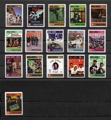 5 Banica De La Soul, 10 Banica Redhead Kingpin, 20 Banica Cypress Hill, 25 Banica Bomb The Bass, 50 Banica Ice Cube, 75 Banica Break Machine, 1 Kuna Eazy-E, 2 Kuna DJ Magic Mike, 3 Kuna Derek B, 5 Kuna Snoop Doggy Dog, 10 Kuna Gucci Crew II, 12 Kuna Ultramagnetic MCs, 20 Kuna Neneh Cherry, 30 Kuna UTFO, 50 Kuna Big Daddy Kane and 75 Kuna The Wee Papa Girl Rappers.