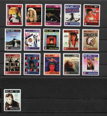 5 Banica Spagna, 10 Banica Lian Ross, 20 Banica Laser Dance, 25 Banica Chip Chip, 50 Banica Eddy Huntington, 75 Banica Lee Marrow, 1 Kuna Bobby O, 2 Kuna KOTO, 3 Kuna Sabrina, 5 Kuna Moon Ray, 10 Kuna Ivan, 12 Kuna Ken Laszlo, 20 Kuna Cyber People, 30 Kuna Valerie Dore, 50 Kuna P. Lion and 75 Kuna Den Harrow.