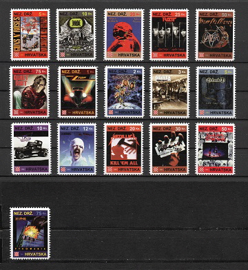5 Banica Guns N´ Roses, 10 Banica Napalm Death, 20 Banica Black Sabbath, 25 Banica Ratt, 50 Banica Slayer, 75 Banica Quiet Riot, 1 Kuna ZZ Top, 2 Kuna Europe, 3 Kuna Pantera, 5 Kuna Entombed, 10 Kuna Aerosmith, 12 Kuna Scorpions, 20 Kuna Metallica, 30 Kuna Judas Priest, 50 Kuna Suicidial Tendencies and 75 Kuna Def Leppard.