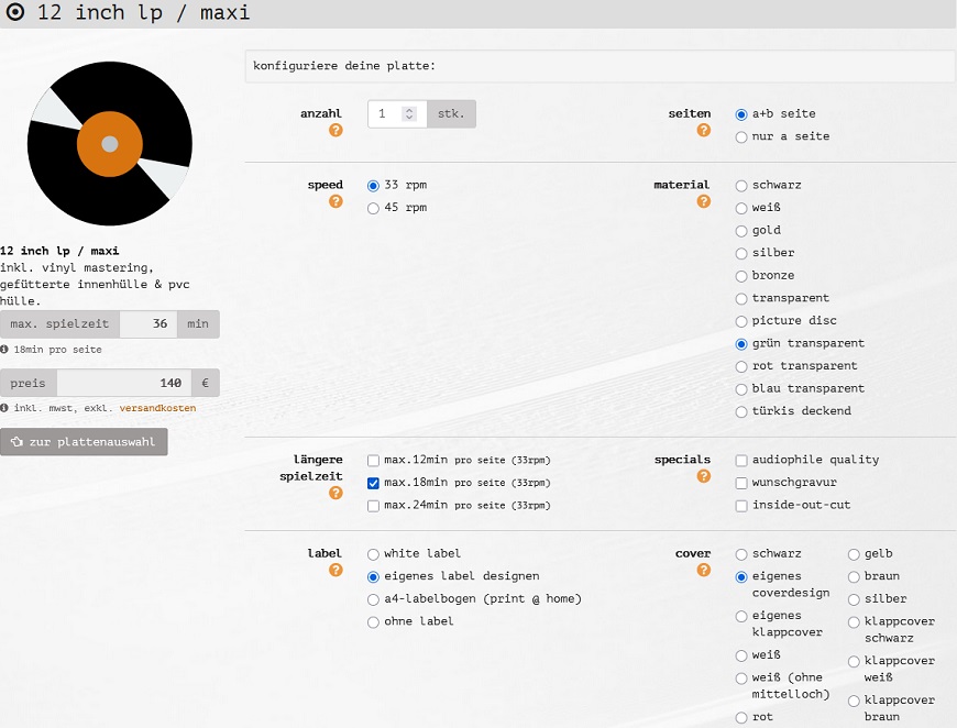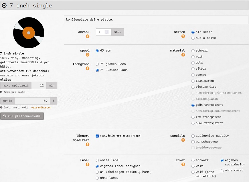Stefan : No. I play with open cards! Everybody can know why the Direct-Cut-Vinyl have a high price. You can see at this screenshot how much are only the producing costs for one 7”-Vinyl, in this case for clear-green Vinyl.