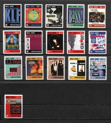 5 Banica Palais Schaumburg, 10 Banica Liaisons Dangereuses, 20 Banica Extrabreit, 25 Banica Profil, 50 Banica Hubert Kah, 75 Banica Stahlnetz, 1 Kuna Silvia, 2 Kuna Roter Mund, 3 Kuna DÖF, 5 Kuna Joachim Schönig, 10 Kuna Fräulein Menke, 12 Kuna Peter Schilling, 20 Kuna Recht Herzlich, 30 Kuna Malaria, 50 Kuna FEE und 75 Kuna Die Krupps.