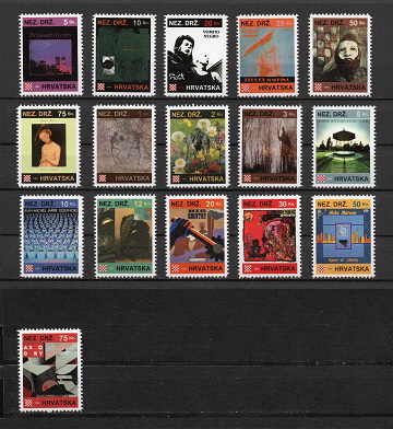 Stamp-set with 16 stamps from Croatia, issued in the year 1993.