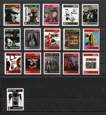 5 Banica The Twins, 10 Banica Clock DVA, 20 Banica Twice A Man, 25 Banica Anne Clark, 50 Banica Blancmange, 75 Banica Howard Jones, 1 Kuna Men Without Hats, 2 Kuna Portion Control, 3 Kuna Kirlian Camera, 5 Kuna Bronski Beat, 10 Kuna Deutsch Amerikanische Freundschaft, 12 Kuna Lars Falk, 20 Kuna Silent Circle, 30 Kuna Swamp Terrorists, 50 Kuna Robotiko Rejekto and 75 Kuna Eight Wonder.