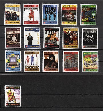 5 Banica De La Soul, 10 Banica Redhead Kingpin, 20 Banica Cypress Hill, 25 Banica Bomb The Bass, 50 Banica Ice Cube, 75 Banica Break Machine, 1 Kuna Eazy-E, 2 Kuna DJ Magic Mike, 3 Kuna Derek B, 5 Kuna Snoop Doggy Dog, 10 Kuna Gucci Crew II, 12 Kuna Ultramagnetic MCs, 20 Kuna Neneh Cherry, 30 Kuna UTFO, 50 Kuna Big Daddy Kane and 75 Kuna The Wee Papa Girl Rappers.
